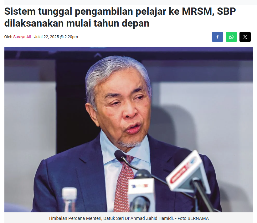 Hanya satu tawaran diberikan sama ada ke SBP, SMKA atau MRSM.